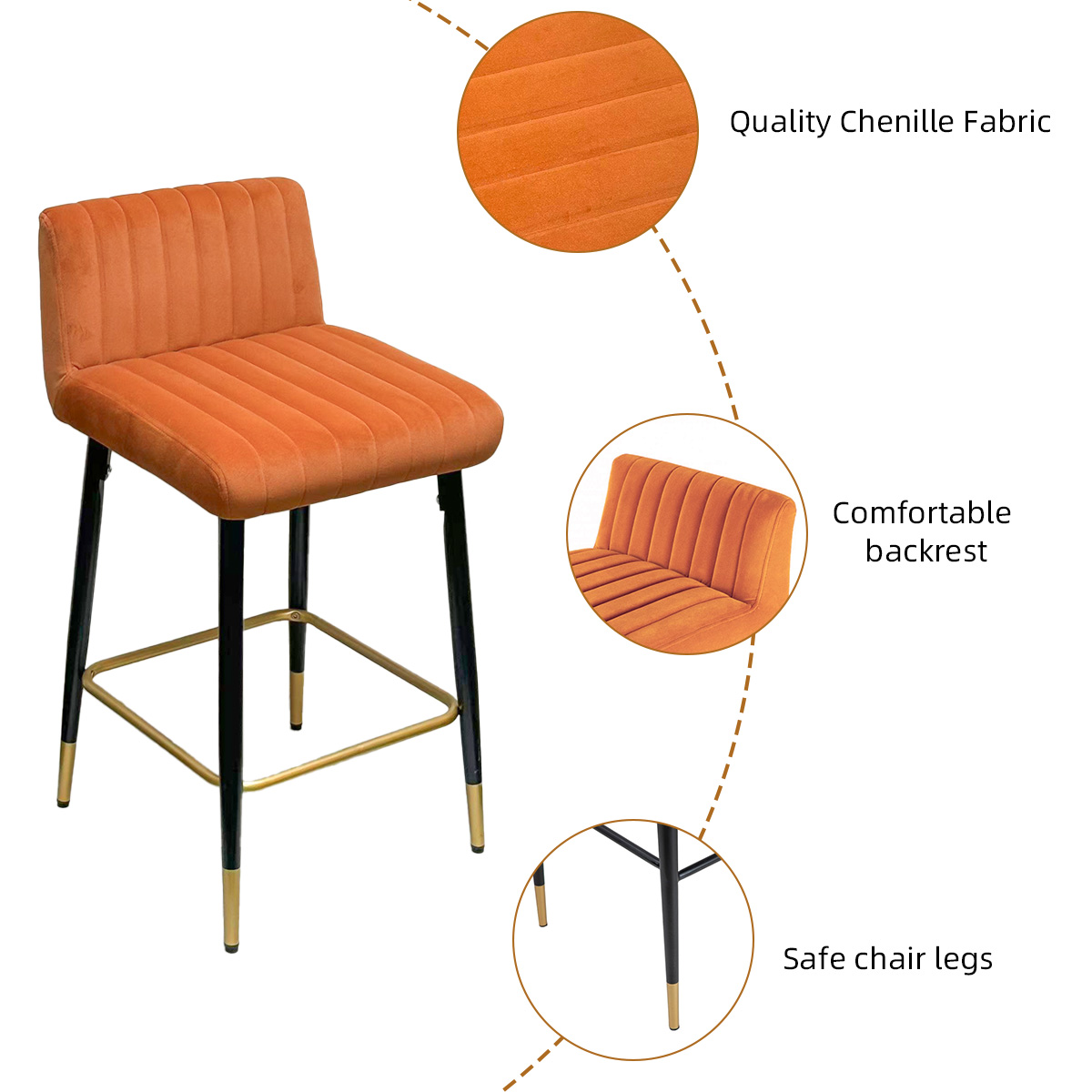 lär dig merLägg till en touch av modern charm till ditt hem med DUOMEI Ochre Orange Velvet Swivel Barstol. Den här pallen är utformad för både stil och komfort och har plysch sammetsklädsel med vertikala kanalsömmar som erbjuder en inbjudande sittplats för alla utrymmen. 360° vridningsfunktionen säkerställer flexibilitet, medan den svarta metallramen med gulddetaljer ger en robust bas och lyxig finish.