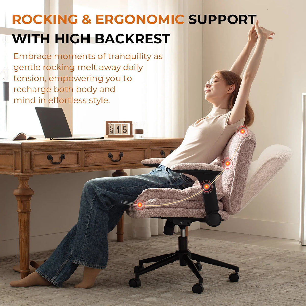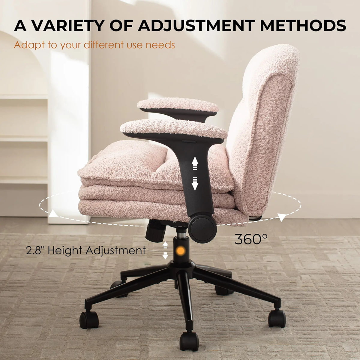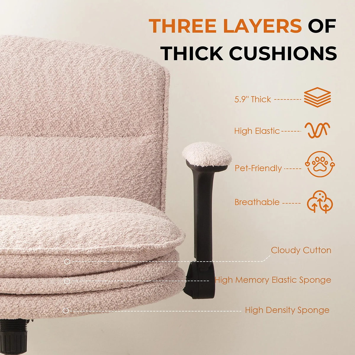 ② Ergonomisk skrivbordsstol med korslagda ben med justerbara armstöd, 360° vridbar och tjocka kuddar — Bouclé hemmakontorsstol