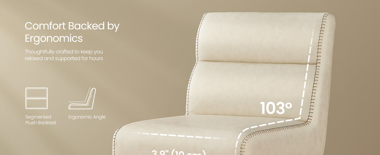 ● Ergonomiskt 103° segmenterat ryggstöd för balanserat svankstöd