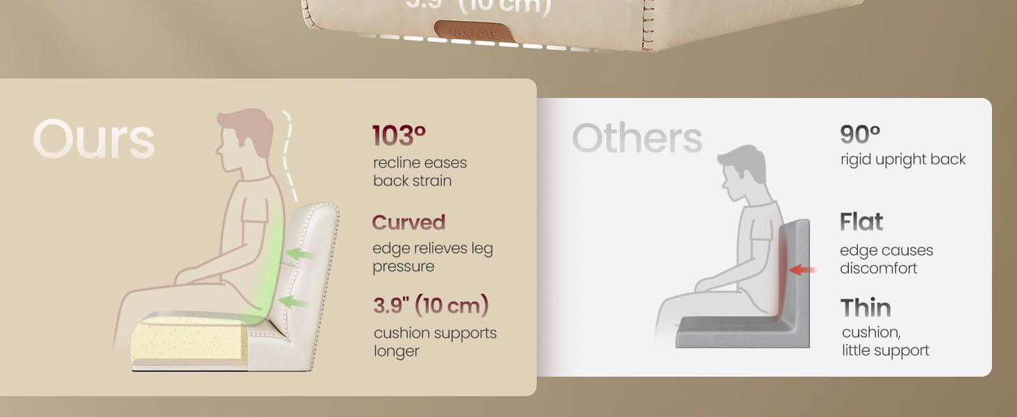 ● Böjd sitskant för att minska bentrycket vid längre sittande