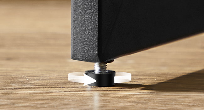 ● Stabil metallbas med justerbara fötter för ojämna golv